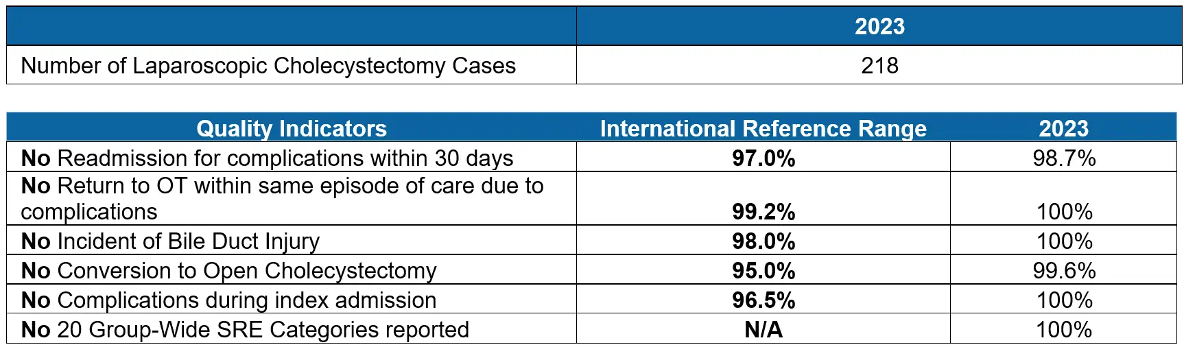 Quality Indicators | International Reference Range | 2023 |