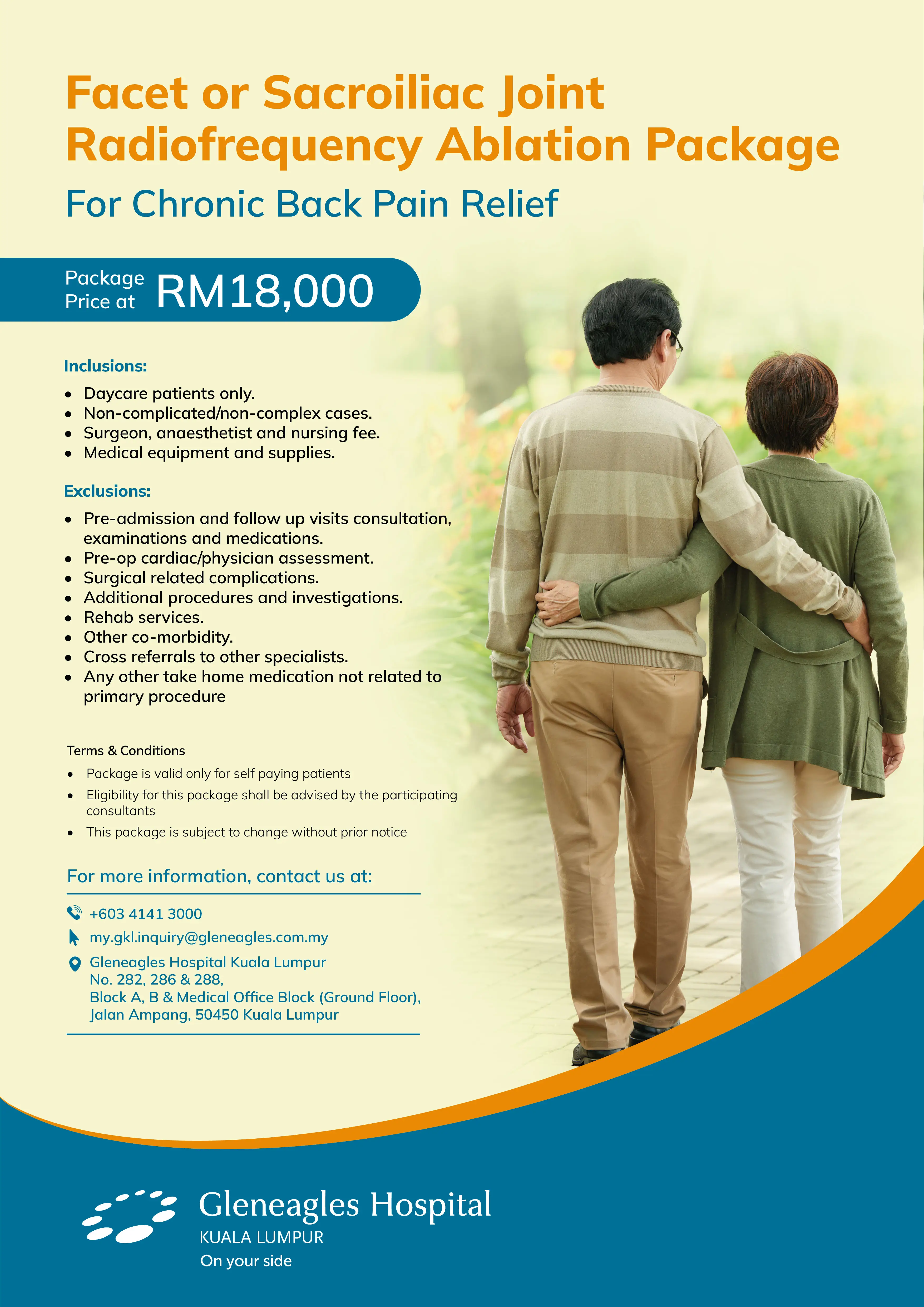 Find relief from persistent back pain with our Facet or Sacroiliac Joint Radiofrequency Ablation package, designed for patients seeking a targeted and minimally invasive solution. This specialised procedure focuses on interrupting pain signals at their source, helping to reduce discomfort and improve mobility. Supported by expert care, it offers a safe and effective option for those looking to return to daily activities with greater comfort and confidence.